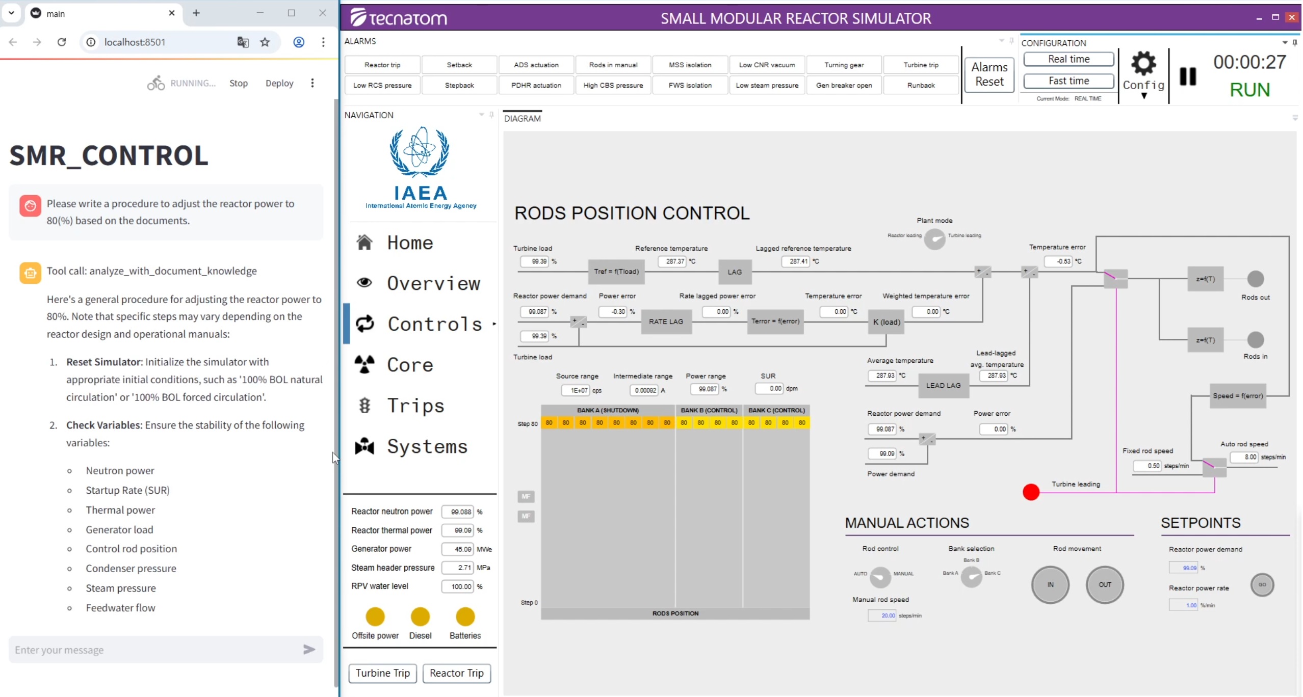 사진 2. IAEA에서 배포하는 iPWR 시뮬레이터를 이용하여 원자로 운전 지원을 위한 에이전트의 기능을 시험하고 있다.