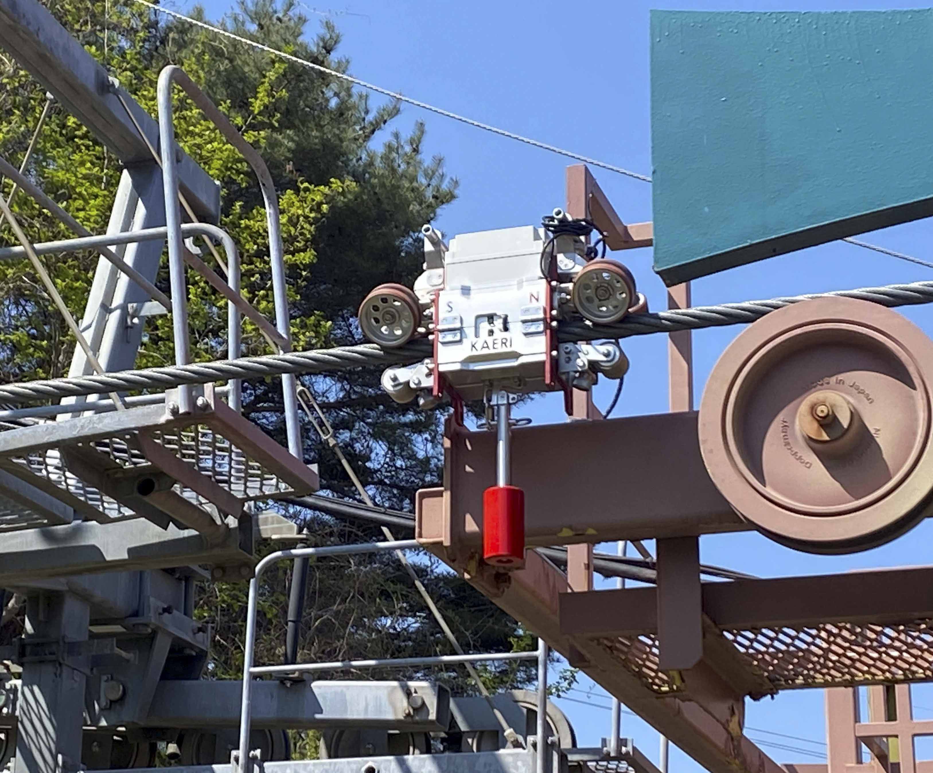 사진 1. 한국원자력연구원 ‘로프 닥터’(Rope Dr.)를 이용하여 와이어로프를 검사하고 있다.