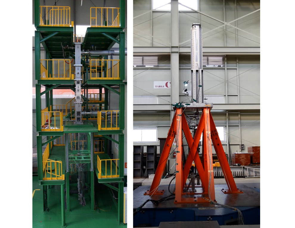 수출용 신형 연구로 반응도제어장치가 설계기준지진에도 건전하고 성능을 유지하는지 시험하는 장치(오른쪽)