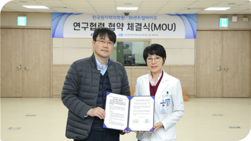 한국원자력의학원은 비임상시험 수탁기관 ㈜센트럴바이오와 오가노이드* 시스템을 이용한 약물 스크리닝** 평가시스템의 공동 개발 및 기술 사업화를 위해 연구협력 협약을 지난달 5일 체결했다.