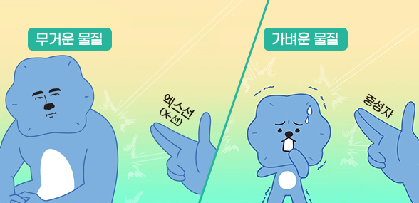 을 무거운 물질에 쏘면 무거울수록 잘 통과되지 않아요.