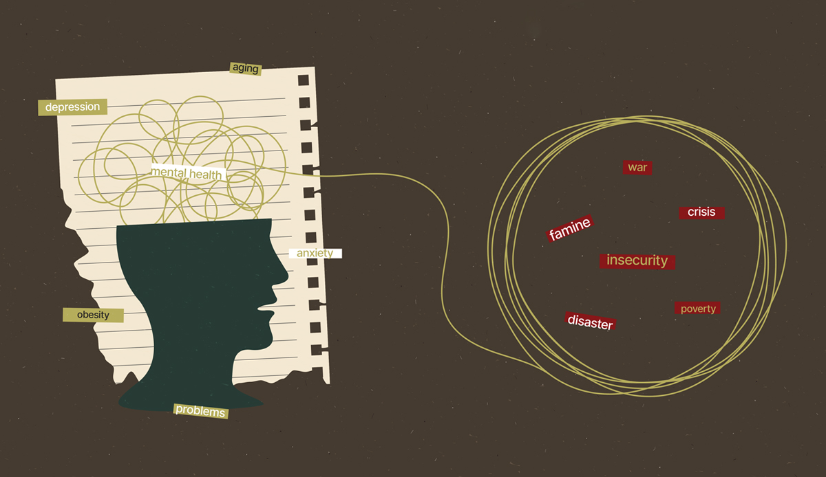 정신 건강은 개인의 성격과 스트레스 취약성뿐만 아니라 사회·환경적 요인도 중요한 역할을 한다는 연구 결과가 많다. 특히 식량 불안정은 불안과 우울증 발생과 밀접한 연관이 있다고 알려졌지만, 관계가 명확히 규명되지 않았다. 식량 불안정은 정상적인 성장과 발달, 행복하고 건강한 삶에 필요한 안전하고 영양가 있는 식품에 접근하기 어려운 상태를 말한다. 식량 불안정은 물가 상승, 기후 변화, 전쟁 등 다양한 요인으로 발생하는데, 저개발국, 개발도상국은 물론 선진국에서도 많은 사람이 경험하고 있다.