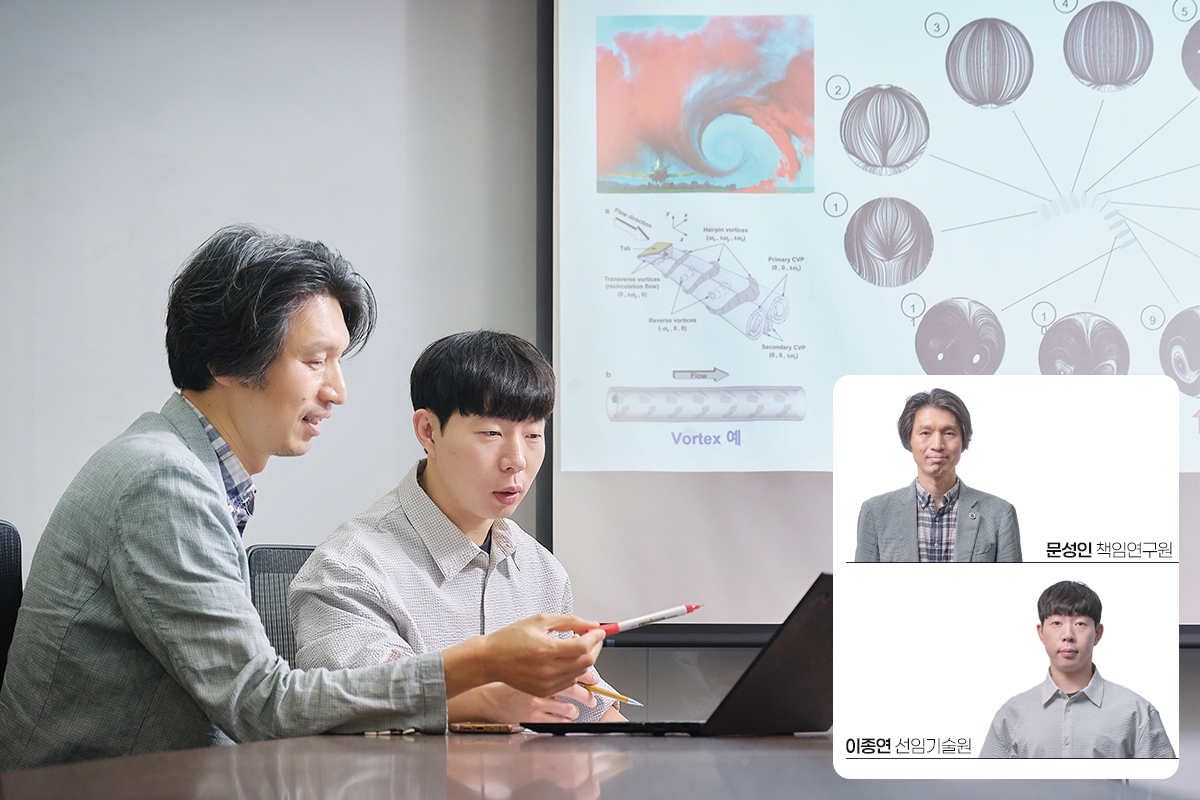 두 번째로 ‘세계 최초 전산유체역학/딥러닝 기반 배관감육 예측 방법론 개발’이라는 우수성과를 달성한 재료안전기술연구부의 문성인 책임연구원과 이종연 선임기술원을 만나봤습니다.