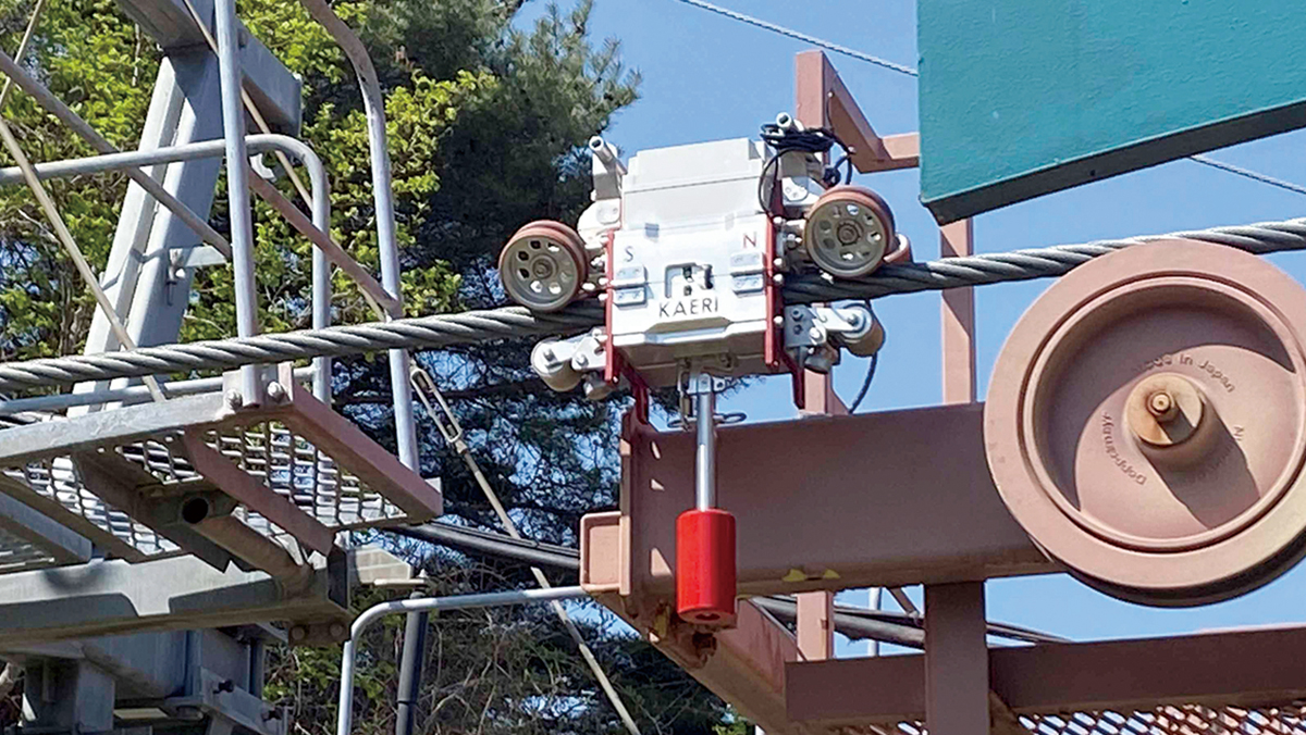 연구원 Rope Dr.를 이용해 와이어로프를 검사하고 있다.
