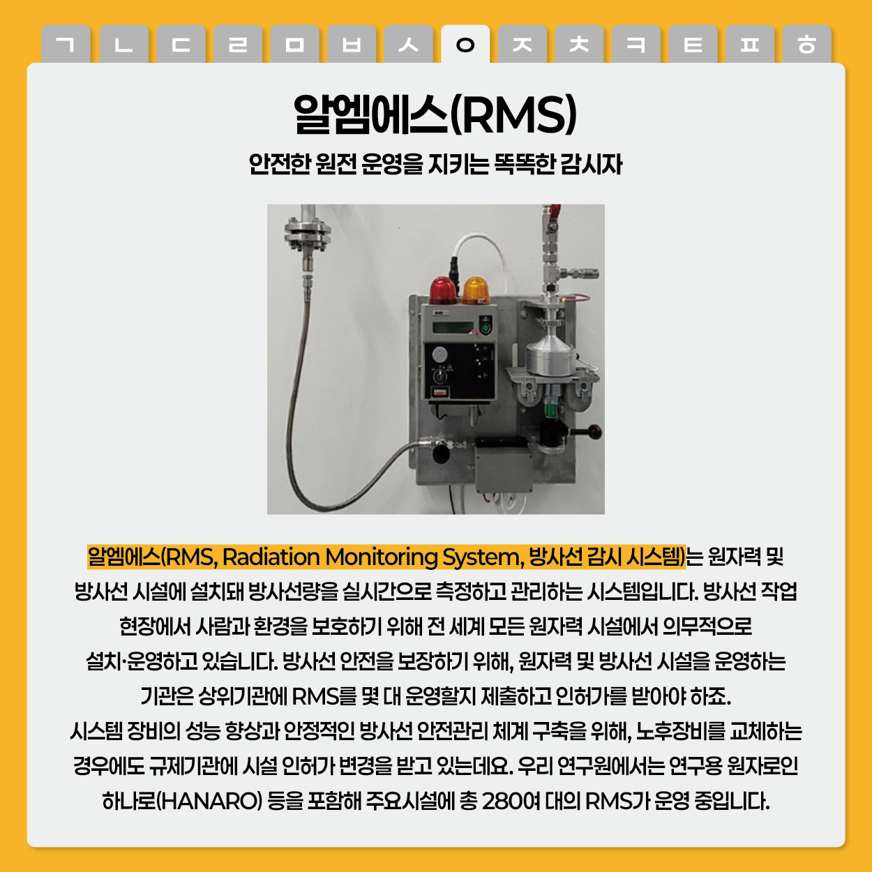 각 한글 자음으로 시작하는 원자력 및 연구원 관련 단어 14개를 소개합니다!