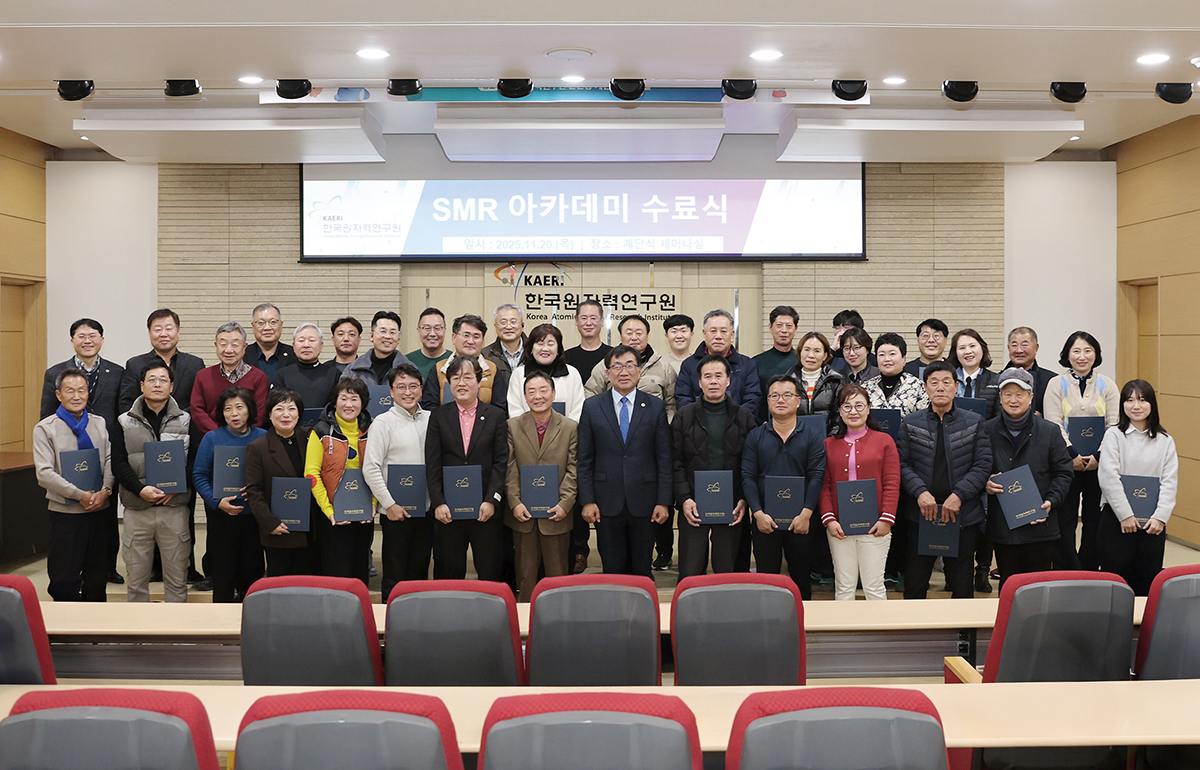 경주 시민을 위한 지역 주민과 함께하는 ‘SMR 아카데미’가 한국원자력연구원 주최, 경주시 후원으로 지난 4월 17일부터 11월 20일까지 네 차례에 걸쳐 진행되었다. 이번 아카데미는 SMR 현황과 미래, SMR과 안전규제, SMR 핵연료의 특징 및 안전성, 원자력연구원 견학 및 수료식으로 구성되었으며, 이를 끝으로 원자력 바로 알기 공부가 끝이 났다. 짧은 시간에 SMR(소형모듈원자로)에 대해서 많은 것을 공부한 것 같다.