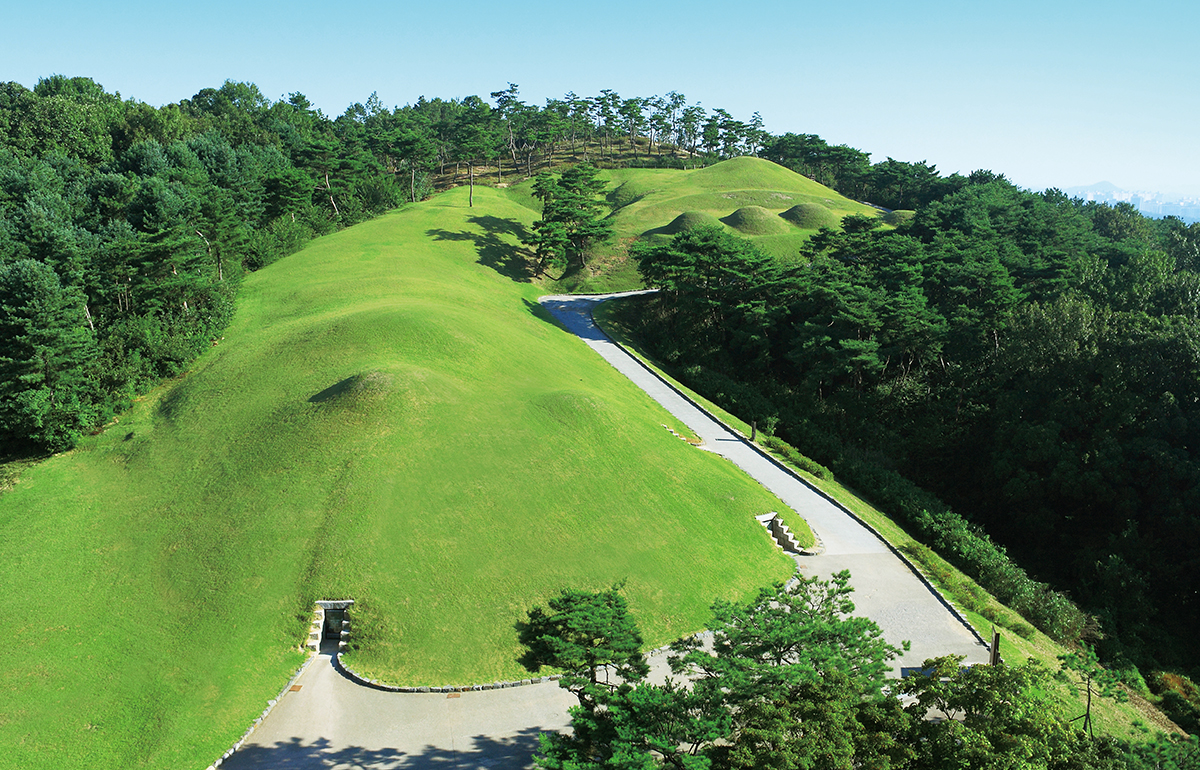 왕릉원이 두 개의 영역으로 나뉜 이유는 무엇일까. 고구려의 침략으로 한성을 잃은(475) 개로왕(21대·재위 455~475)에게는 두 동생, 문주왕(22대·275~477)과 곤지(?~477)가 있었다. 문주왕은 재위 2년 만인 477년에 서거하고, 13살이었던 삼근왕(23대)이 왕위를 이었다. 그러나 삼근왕도 즉위 2년 만인 479년, 15살의 나이에 요절한다. 후사가 없었기 때문에 백제 왕계는 곤지의 후손인 동성왕(24대·479~501)과 무령왕(25대·501~523)으로 이어진다. 이러한 배경이 왕릉원이 ‘두 갈래’로 구분된 이유로 해석된다.
